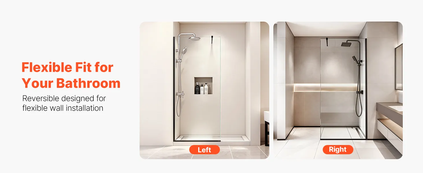 L'installazione flessibile su entrambi i lati della parete offre maggiore libertà di disposizione, aiuta il pannello doccia in vetro fisso a integrarsi bene nella disposizione del bagno.