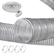 VEVOR Tubo Flessibile di Raccolta della Polvere, 100 x 15240 mm Materiale, Flessibile Trasparente Antiforatura con Bobina di Filo in Acciaio al Carbonio, 4 Morsetti in Scciaio inox 304 Sega a Nastro