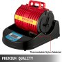 Pressa termica per tazze VEVOR, rossa e nera, con indicazioni delle dimensioni di altezza, larghezza e profondità.