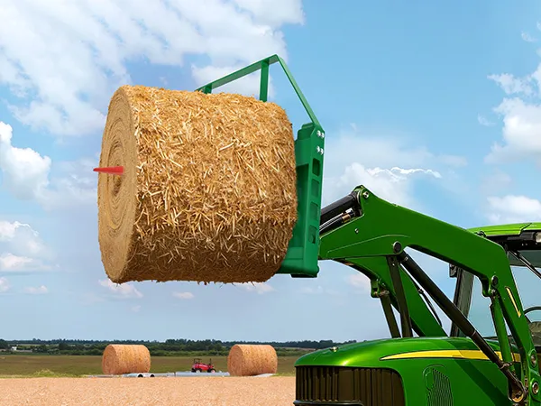 Espandi con le forche da fieno: le nostre forche per pallet ad attacco rapido sono dotate di 3 interfacce per fiocchetti, che consentono di passare alla modalità fiocchetti per facilitare il trasporto di grandi balle di fieno.