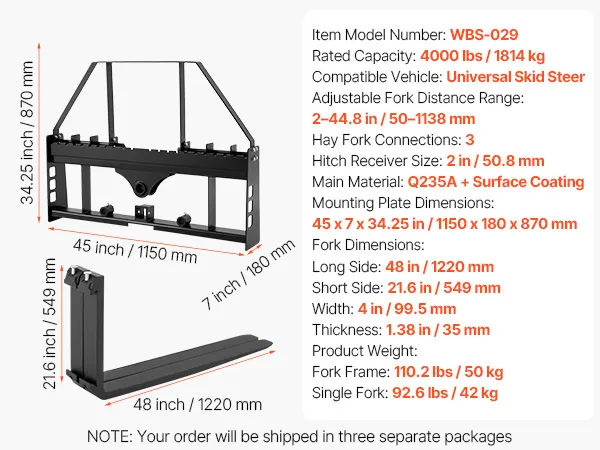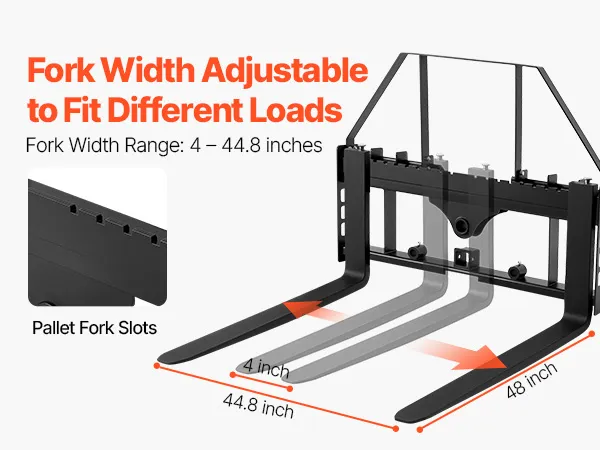 Capacità di carico elevata di 4000 libbre: le nostre forche per minipale per impieghi gravosi (piastra di montaggio: 45 x 7 x 34,25 pollici; lunghezza forca: 48 pollici) supportano fino a 4000 libbre. Ideali per aziende agricole, magazzini e trasporti