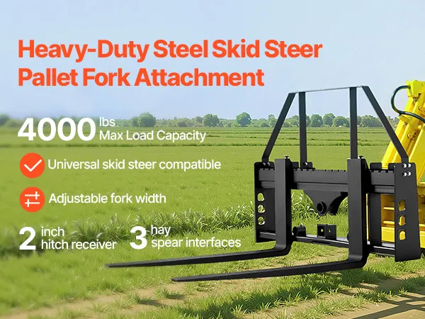 Le nostre forche per minipale in acciaio ad alta resistenza sono progettate per sopportare carichi di 1800 kg e sono compatibili con la maggior parte delle minipale e dei trattori. Ideali per lavori agricoli, giardinaggio e lavori edili, per lo spostamento di balle di fieno, materiali edili e altro ancora.