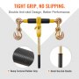 VEVOR ratchet chain binder with 20ft chain, showing closed and open measurements.