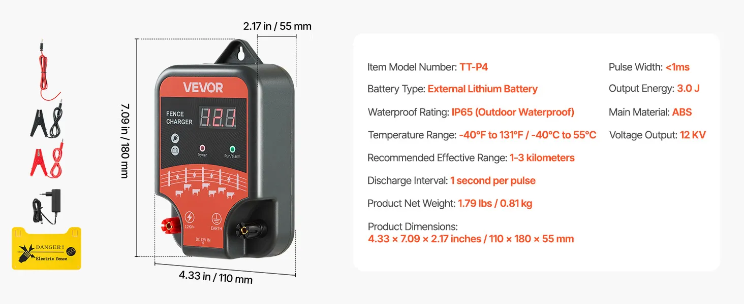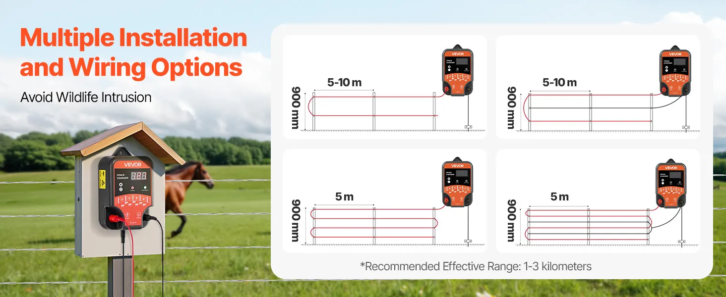 Installazione flessibile e ampia applicazione: il caricabatterie per recinzioni plug-in è dotato di un kit di installazione completo per una facile configurazione e un avvio rapido