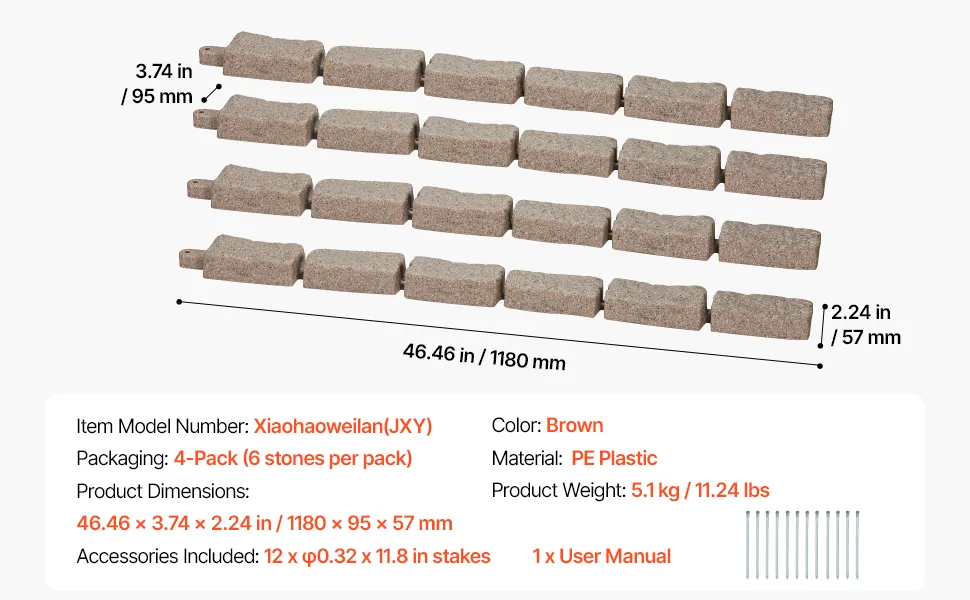 Con un peso di soli 1,0 kg per pezzo, ogni mattone è facile da spostare, regolare e installare, anche da una sola persona. Che tu sia un appassionato del fai da te o un giardiniere alle prime armi, puoi ottenere rapidamente il layout del paesaggio desiderato senza sollevare pesi.