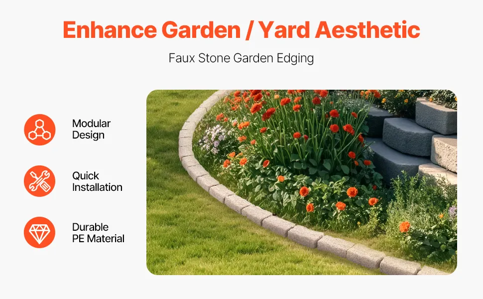 Questa bordatura in pietra per paesaggio presenta una texture di pietra realistica che esalta senza sforzo l'aspetto visivo del tuo giardino, piscina, vialetti. Il design modulare consente un'installazione rapida.