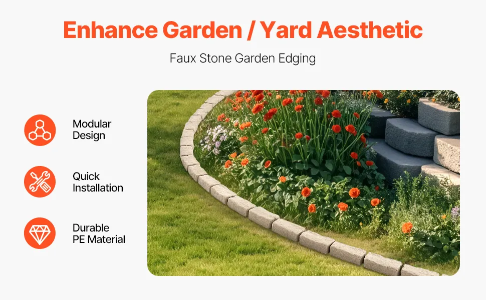 Questa bordatura in pietra per paesaggio presenta una texture di pietra realistica che esalta senza sforzo l'aspetto visivo del tuo giardino, piscina, vialetti. Il design modulare consente un'installazione rapida.