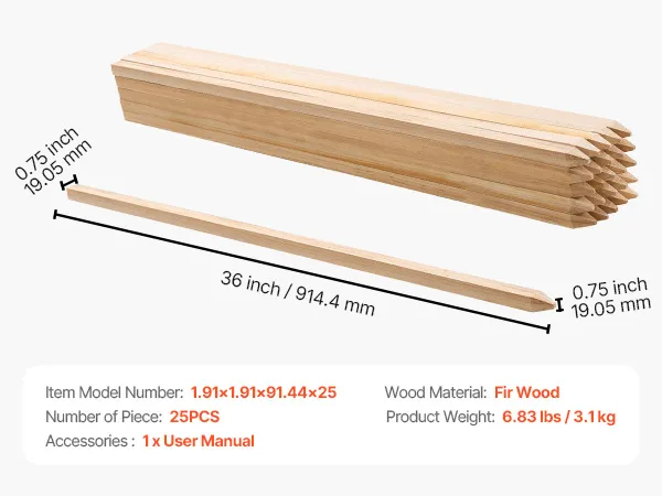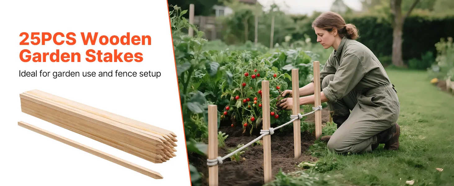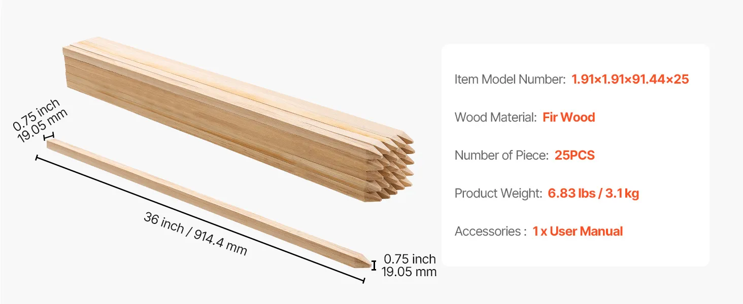 VEVOR Pali in Legno Duro per Recinzione, Picchetti da Giardino in Legno di Abete con Punta Affilata, 25 Pezzi 19,05 x 19,05 x 914.4 mm, Pali di Recinzione Segnaletici per Confini di Cortili
