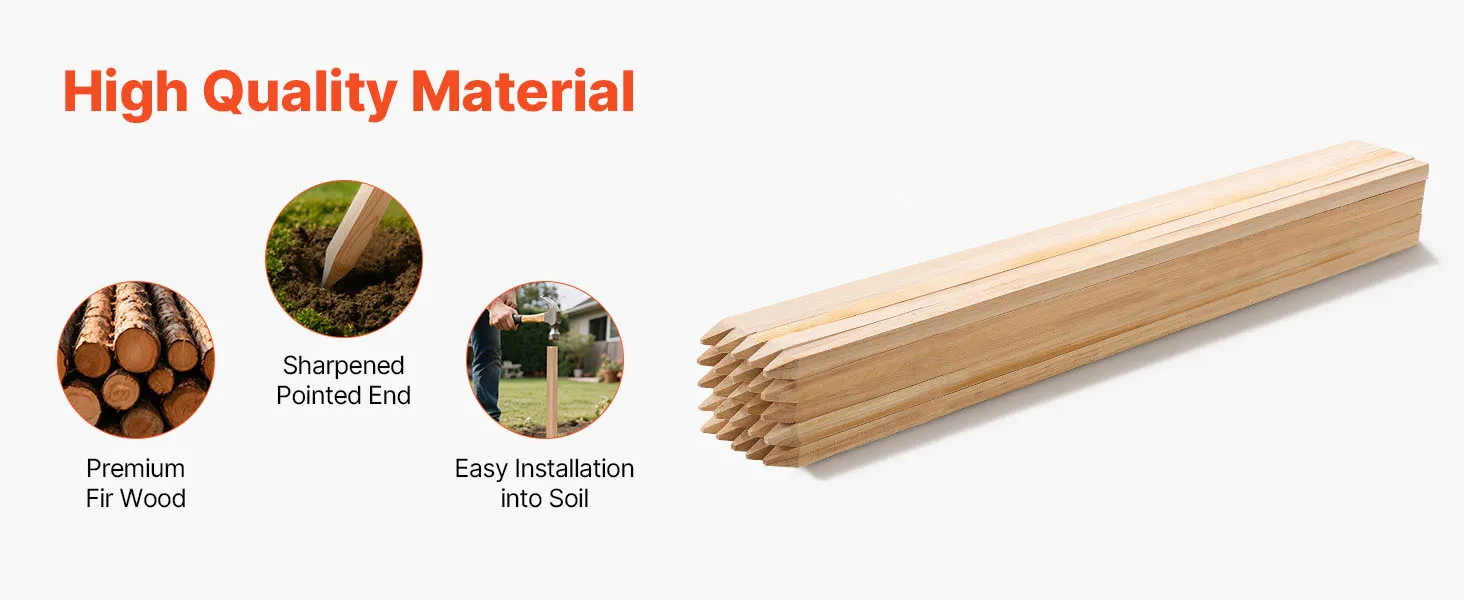 Legno di abete di alta qualità: realizzati in abete naturale, i picchetti in legno sono ideali per l'uso all'aperto, garantendo lunga durata e tranquillità