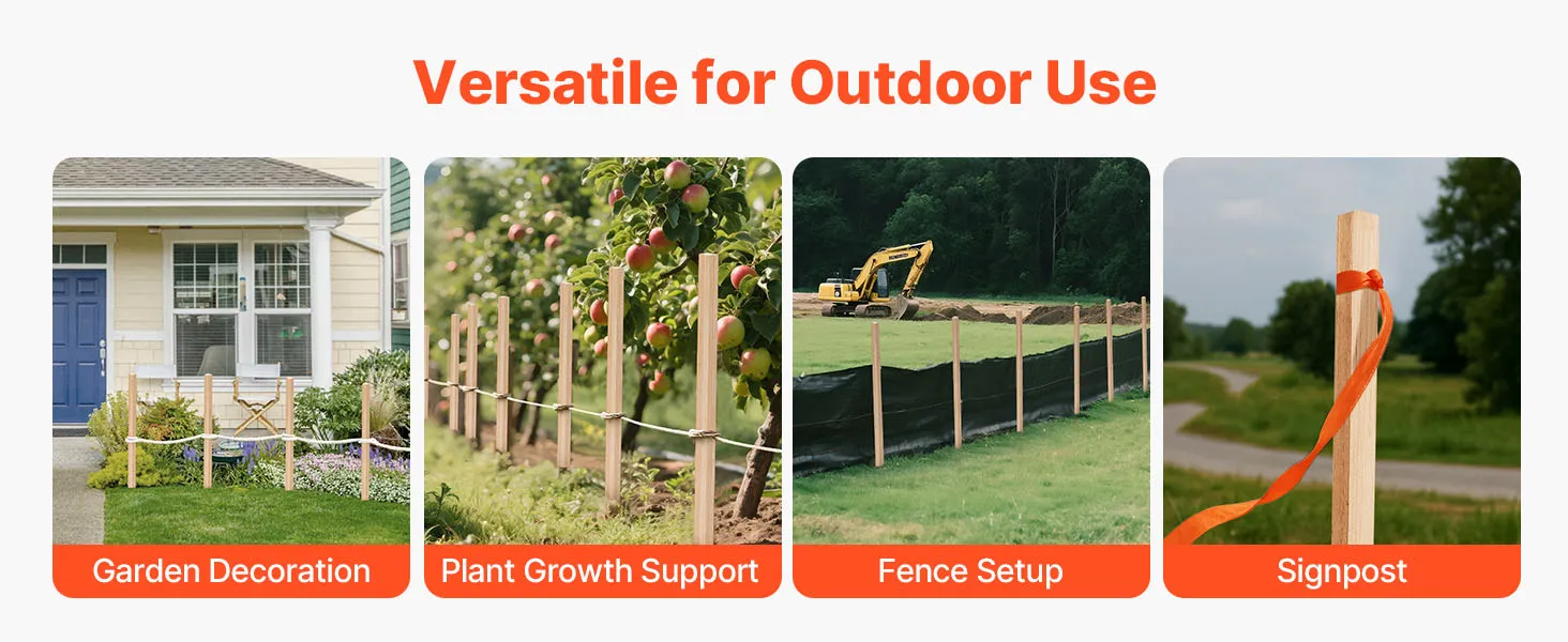Oltre al giardinaggio, questi picchetti in legno per rilievi sono utili per vari usi, come l'installazione di recinzioni, progetti di misurazione, segnaletica direzionale e cantieri edili.