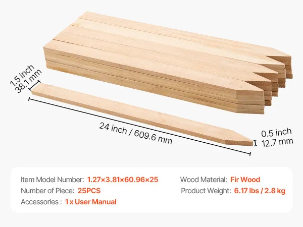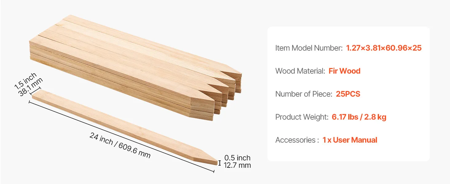 VEVOR Pali in Legno per Recinzione, Picchetti da Giardino in Legno di Abete con Punta Affilata, 12,7 x 38,1 x 609,6 mm, Pali di Recinzione Segnaletici per Confini di Cortili, 25 Pezzi