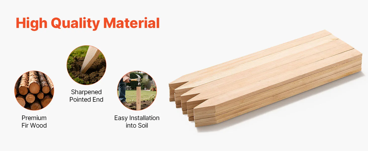 Legno di abete di alta qualità: realizzati in abete naturale, i picchetti in legno sono ideali per l'uso all'aperto, garantendo lunga durata e tranquillità