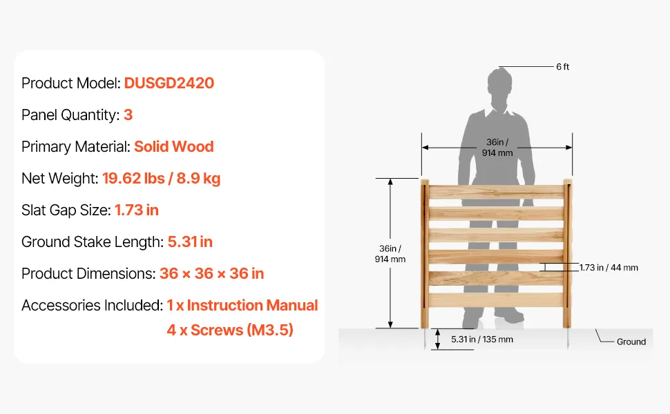 Materiale in legno di prima qualità: realizzata in legno massello naturale, questa recinzione per attrezzatura da piscina offre qualità superiore e lunga durata. Resiste a crepe e deformazioni, resistendo agli elementi esterni e mantenendo la sua bellezza e le sue prestazioni nel tempo