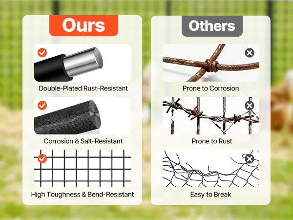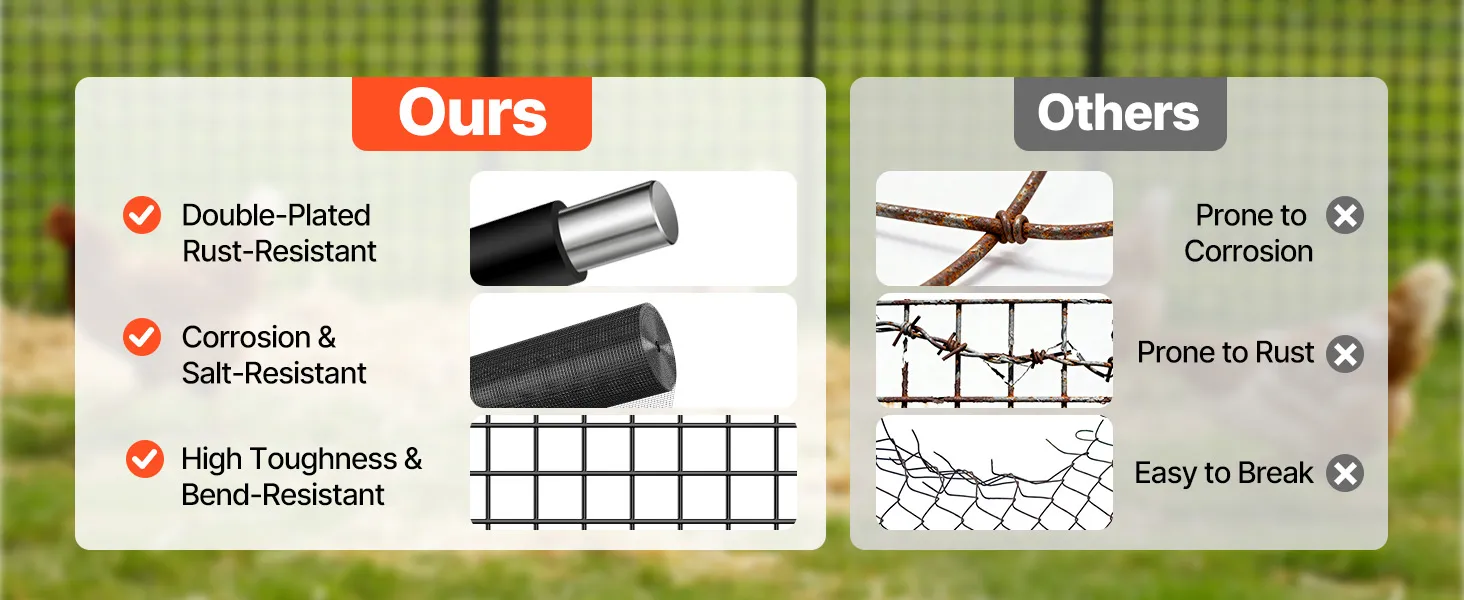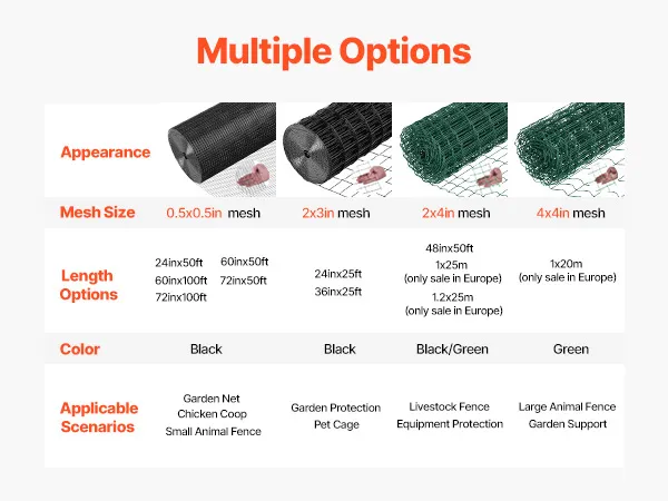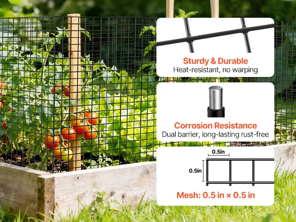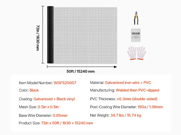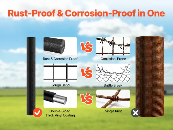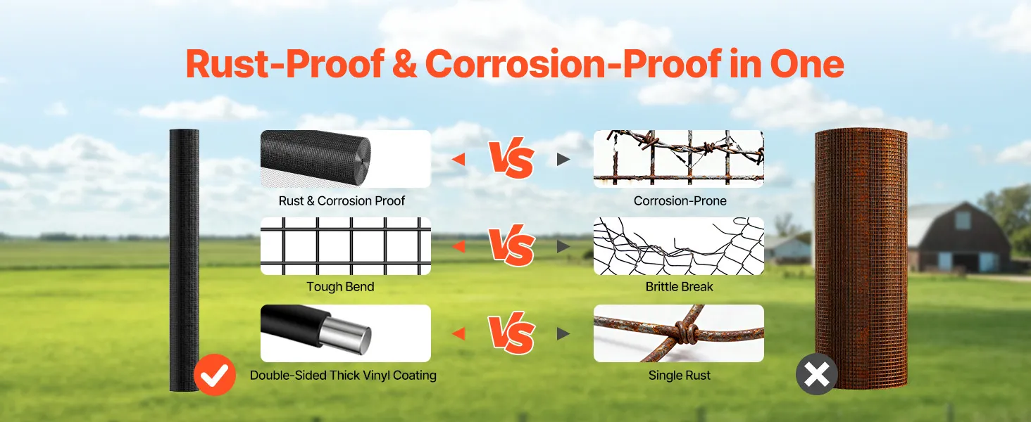 Rivestimento di alta qualità: filo di acciaio zincato ad alta resistenza con rivestimento in vinile nero per una doppia protezione dalla ruggine. La maggiore resistenza agli agenti atmosferici mantiene la rete metallica resistente al sole