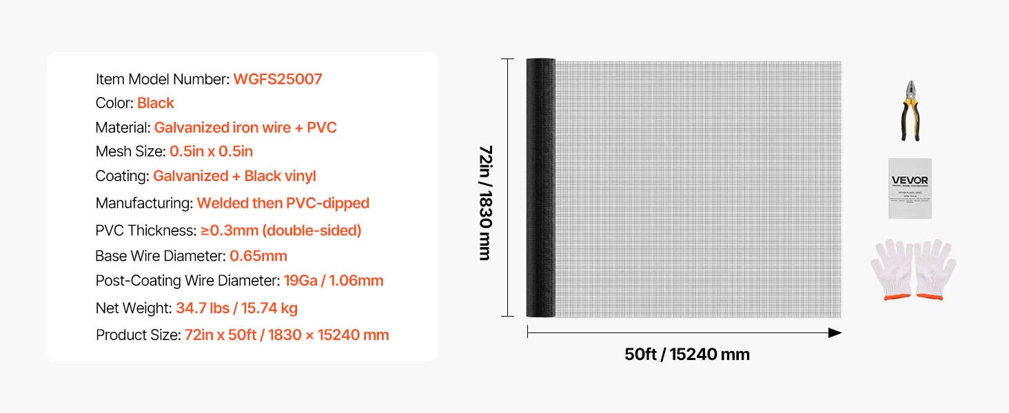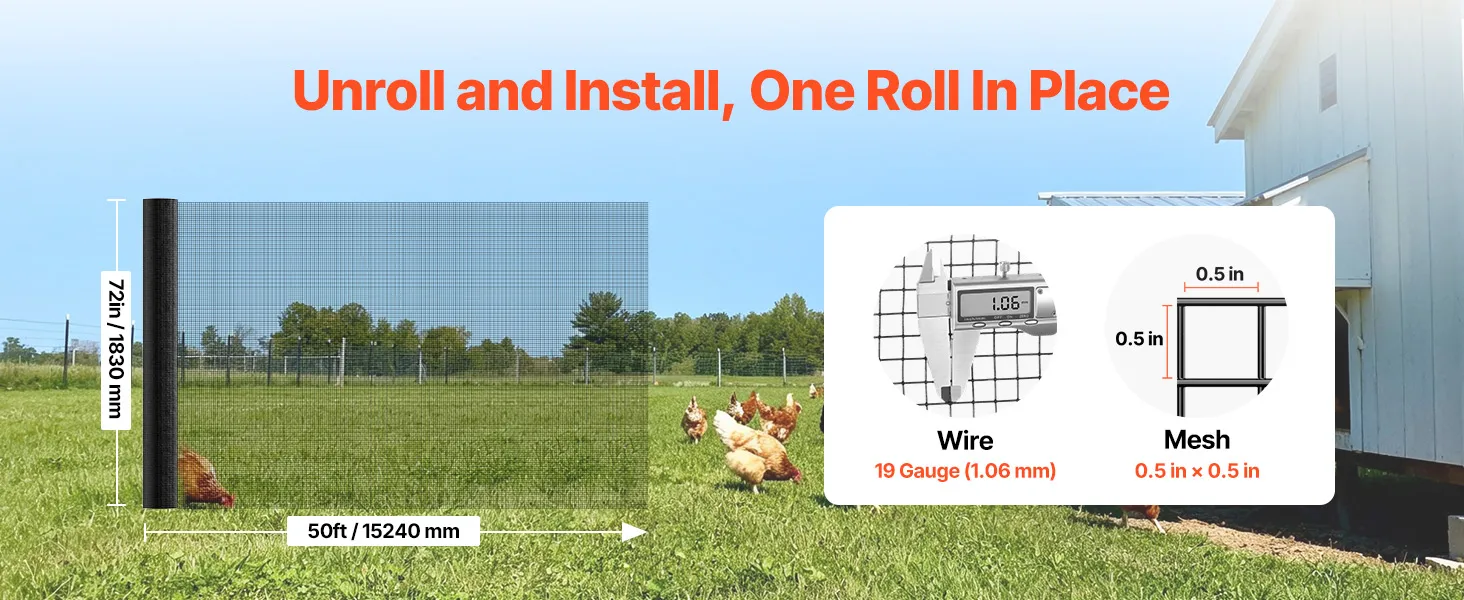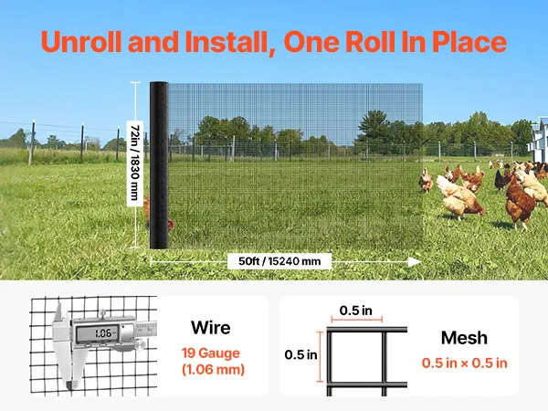 Installazione semplice: design leggero con rullo in acciaio e guanti antitaglio inclusi. Non sono necessari attrezzi aggiuntivi. L'installazione del rullo in rete metallica saldata può essere completata in 15 minuti