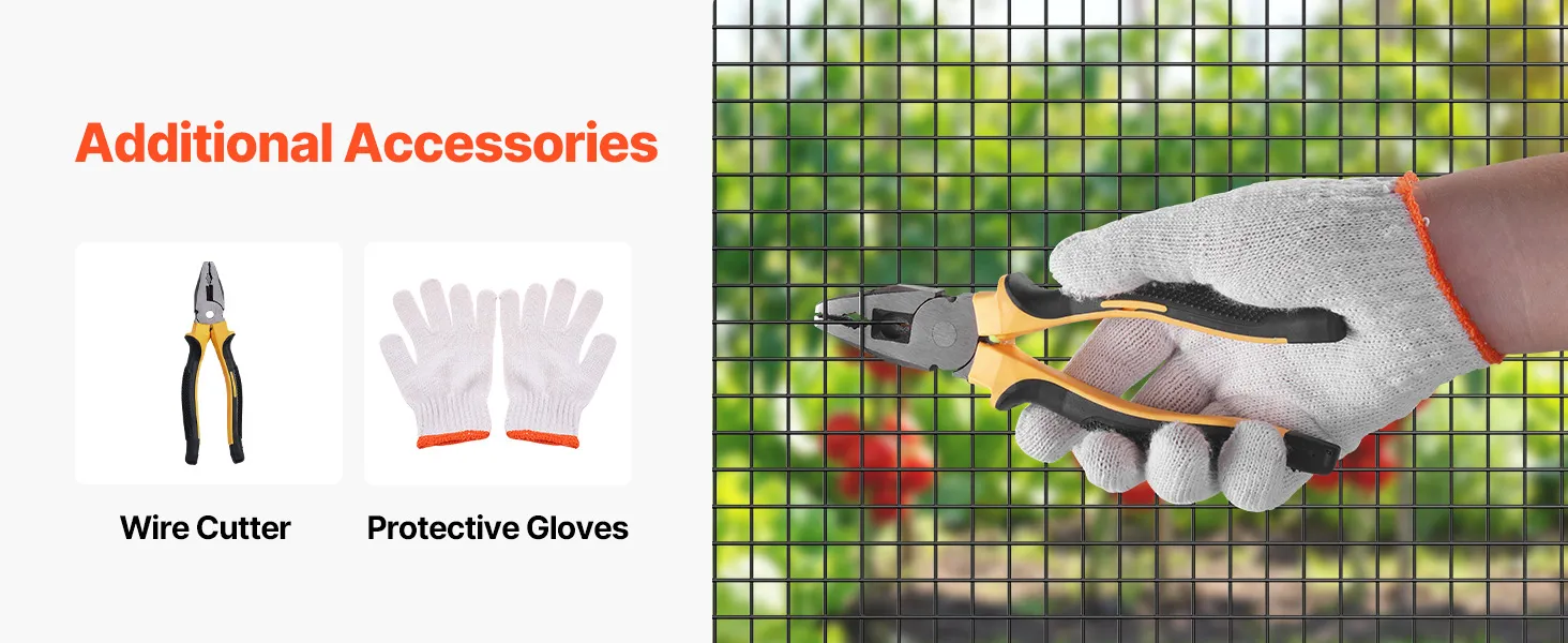 Include 1 taglierino e 1 paio di guanti, per consentirti di rifinire muri, recinzioni o gabbie come preferisci.
