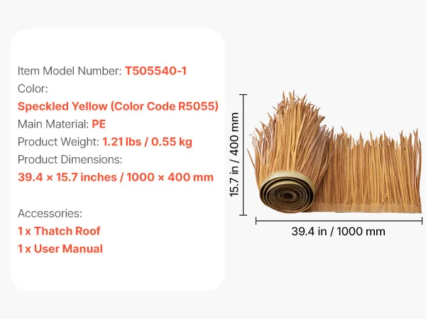 Resistente e duratura: realizzata in polietilene di alta qualità, questa copertura in paglia è impermeabile, resistente alla corrosione, al vento e al calore, rendendola ideale sia per uso interno che esterno