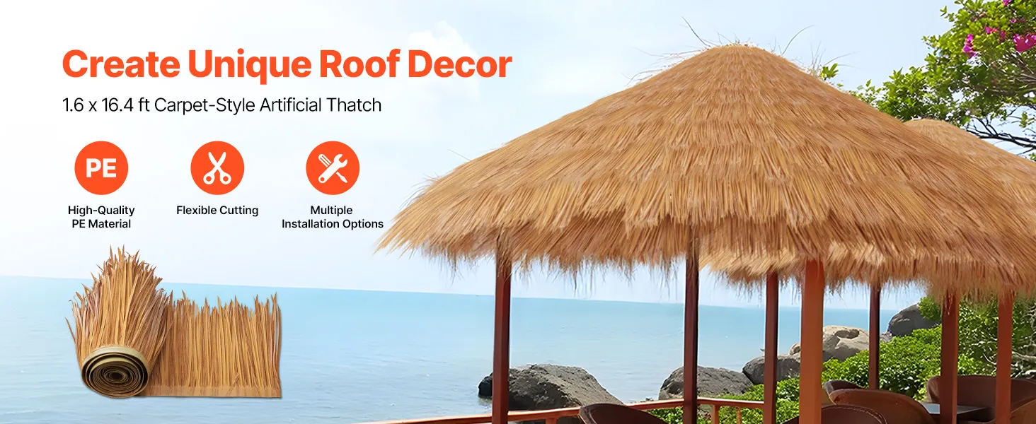 Ampia applicazione: il tetto in paglia artificiale è ideale per decorazioni di resort, abbellimento di giardini, interior design o progetti creativi fai da te