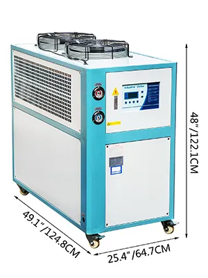 Progettato per uso interno; Portatile su ruote. Ideale per produzione, plastica e gomma, lavorazione dei metalli, saldatura, petrolio e gas, HVAC, alimenti e bevande, medicina e altro ancora. Refrigeratore d'aria per uso industriale.