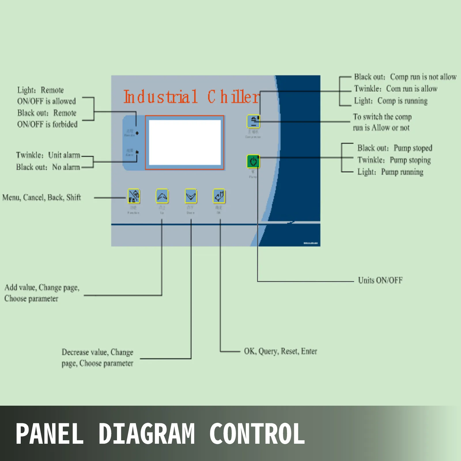 Display LCD intelligente e pulsanti di accensione, puoi controllare facilmente il refrigeratore raffreddato ad acqua. La temperatura regolabile entro 5℃-35℃.