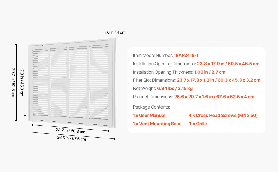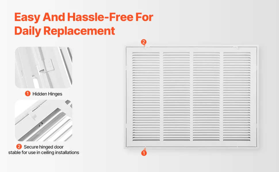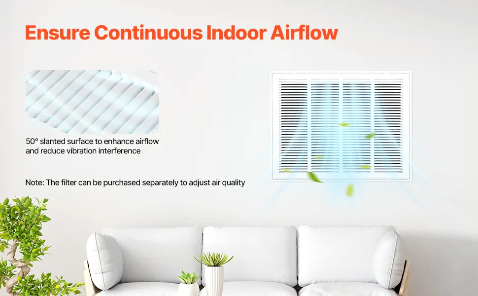 Flusso d'aria efficiente: goditi un'esperienza di ventilazione silenziosa ed efficiente per il tuo sistema di riscaldamento e raffreddamento con questo dispositivo (filtro non incluso). Il design delle alette angolate massimizza il flusso d'aria garantendo al contempo un funzionamento silenzioso
