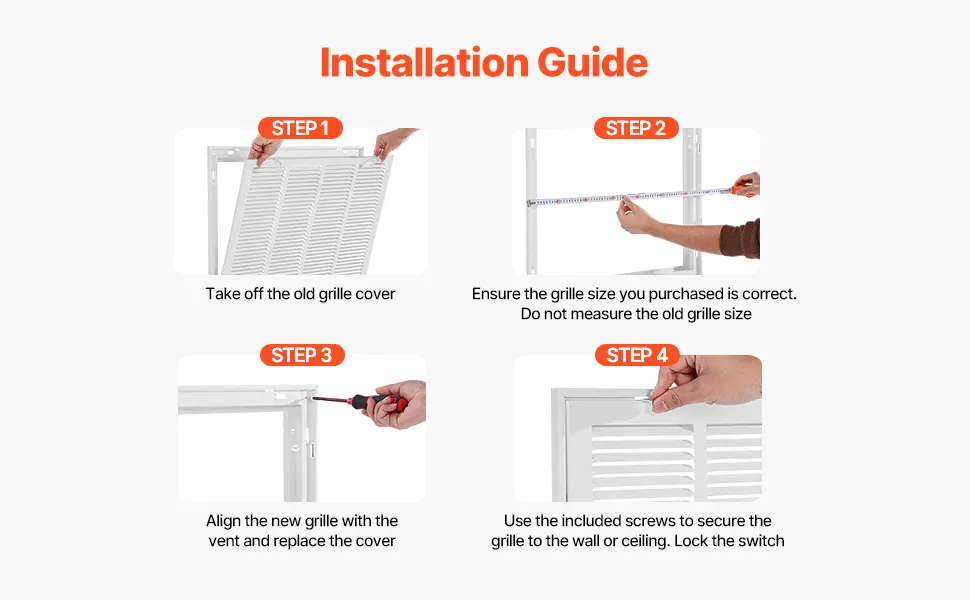 Resistente alla ruggine e durevole: realizzata in acciaio ad alta resistenza, questa griglia di ritorno dell'aria resiste alla pressione e ai graffi. Il processo di stampaggio dell'acciaio assicura l'assenza di bordi taglienti e il rivestimento in polvere antiruggine evita scheggiature, graffi e sbiadimento