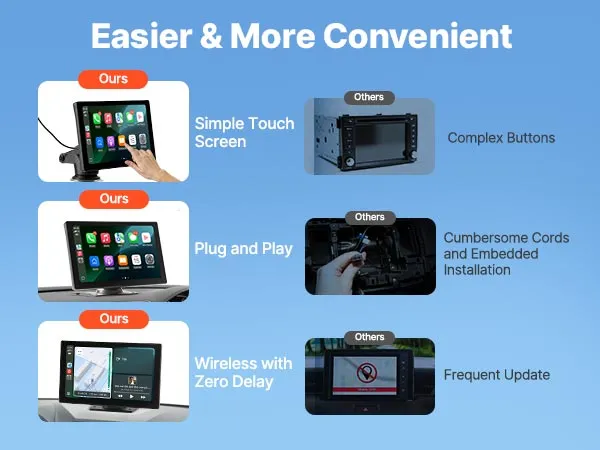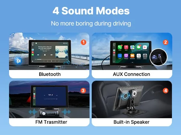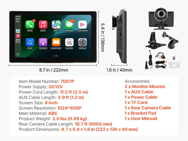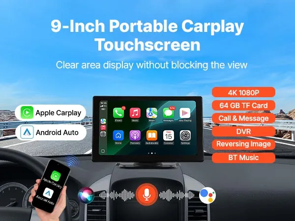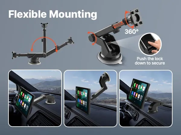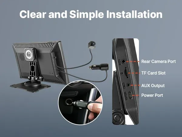 Ampia compatibilità con i veicoli: il nostro kit di accessori per auto è dotato di un supporto a ventosa regolabile per un'installazione stabile e un facile smontaggio. Alimentato a 12 V CC, questo schermo CarPlay per la maggior parte dei veicoli