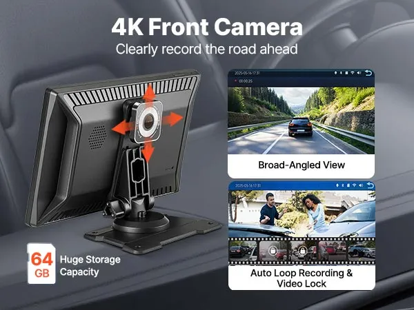 Supporto DVR e telecamera di retromarcia: questo schermo per auto è dotato di una telecamera anteriore 4K per la registrazione in tempo reale durante la guida, con blocco video di emergenza e supporto per istantanee