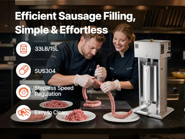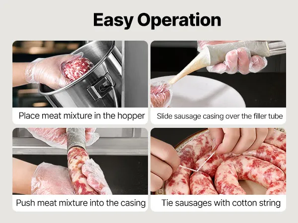 Risultati compatti: la nostra macchina per salsicce è alimentata da un motore da 200 W per prestazioni potenti e durature, ideale per uso commerciale. La piastra di pressione con fori di ventilazione aumenta l'efficienza