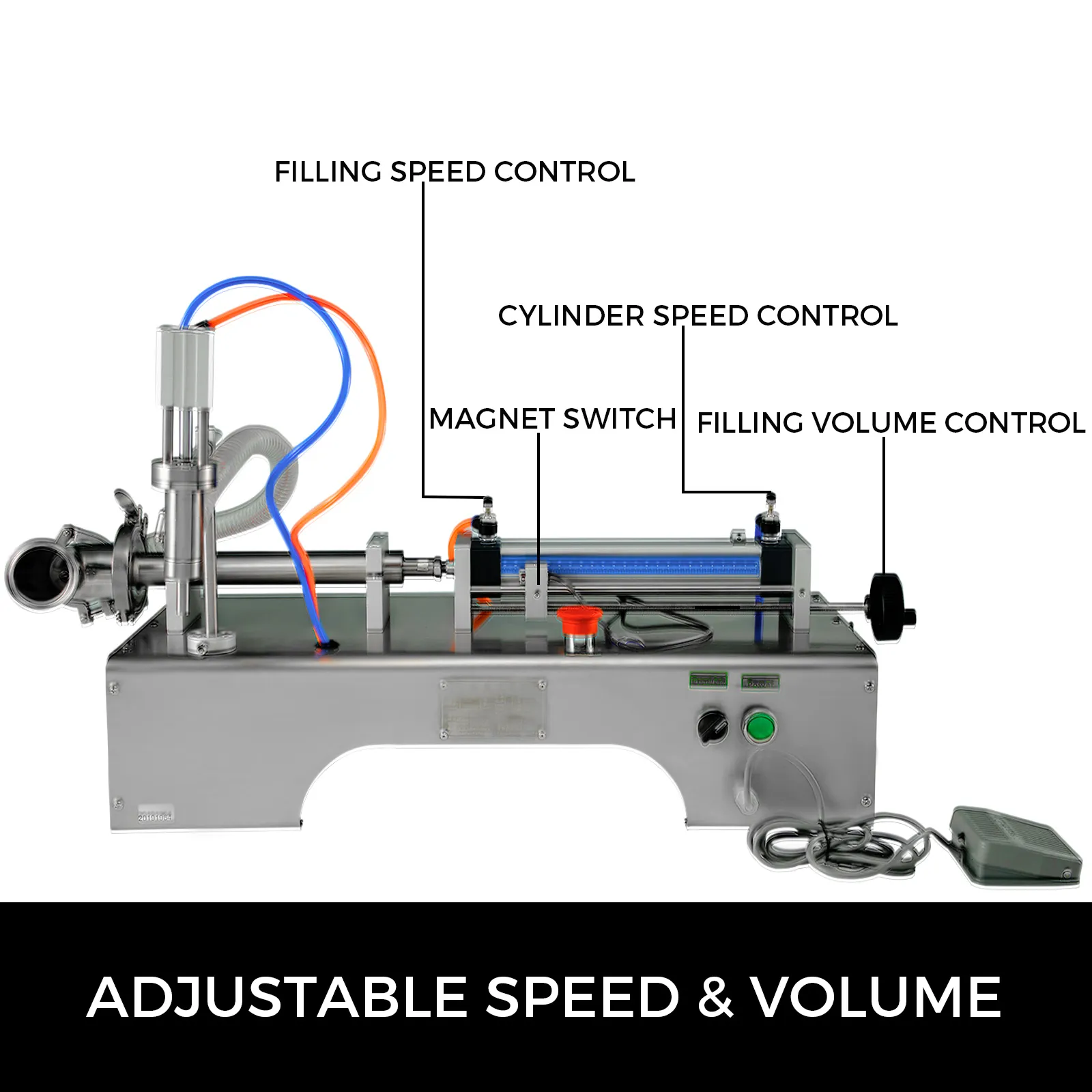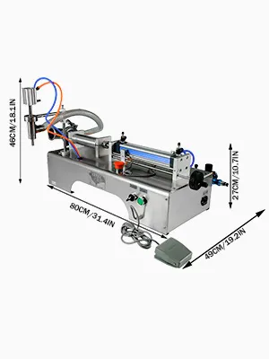 Ecco un elenco della nostra riempitrice pneumatica da 50-500 ml per liquido a testa singola, adatta a tutti i liquidi, ampiamente utilizzata nei settori della chimica quotidiana, degli alimenti e delle bevande, della farmacia e così via. Nota: è necessario preparare il compressore d'aria per sé.