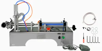 Ecco un elenco della nostra riempitrice pneumatica da 5-100 ml per liquido a testa singola, adatta a tutti i liquidi, ampiamente utilizzata nei settori della chimica quotidiana, alimenti e bevande, farmacia e così via. Nota: è necessario preparare il compressore d'aria per sé.