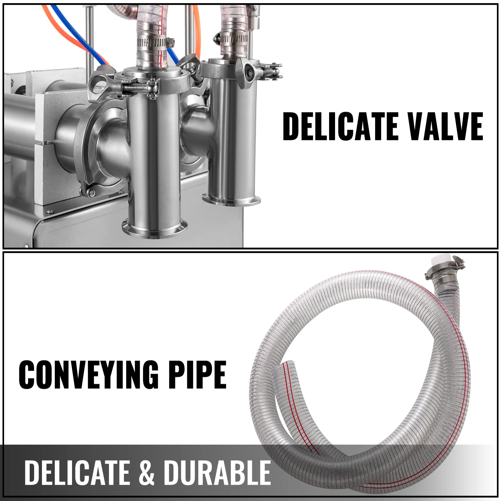 Grande capacità: 50-500 ml. Il materiale di questa riempitrice di liquidi è acciaio inossidabile. La base ispessita e lo stantuffo in PTFE sono di alta qualità. Le fibbie rimovibili rendono la macchina per il riempimento di lozioni di facile manutenzione.