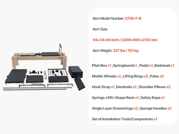 Configurazione completa: il set di macchine Pilates Reformer include spallacci in schiuma ad alta densità, una morbida tavola da salto, una Pilates box, 6 molle e tutti i componenti mostrati nelle immagini. Il letto scivola dolcemente senza alcun sobbalzo, consentendo allenamenti personalizzabili e migliorando la tua esperienza Pilates