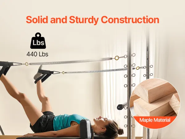 Struttura Premium: Questo pilates reformer è dotato di una splendida e robusta struttura in legno massello di acero con un interno elegante, che supporta fino a 400 libbre. La sua robusta costruzione assicura maggiore stabilità e supporto, rendendolo perfetto per le tue esigenze quotidiane di meditazione e allenamento