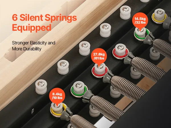 Molle Premium: Realizzata con molle in acciaio per pianoforte importate di alta qualità, questa attrezzatura per pilates per l'allenamento a casa offre 6 livelli di resistenza delle molle per allenare efficacemente la parte superiore, inferiore e i muscoli del core. Il set include 2 molle forti (rosse), 2 molle medie (verdi) e 2 molle leggere (gialle)