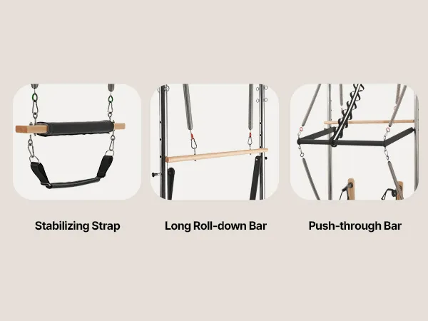 La macchina multifunzionale per pilates 3 in 1 unisce versatilità e design ergonomico per soddisfare molteplici esigenze di allenamento. È progettata per adattarsi a vari tipi di corpo e consente di allenarsi in tutta comodità.