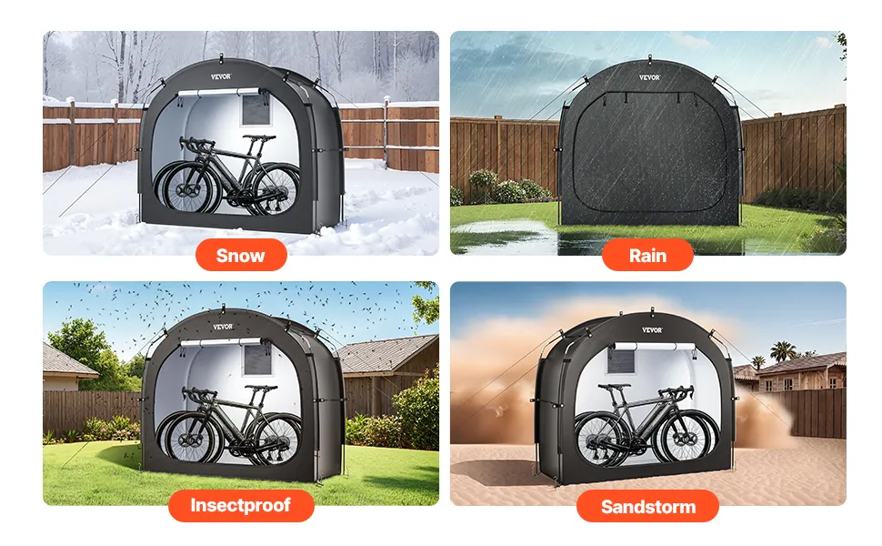 Dalle tempeste di neve e dalle forti piogge alle tempeste di sabbia, questo ricovero per bici offre una protezione completa per la tua bici, assicurandoti un'esperienza di guida sicura e meravigliosa. Non c'è bisogno di preoccuparsi di bagnarsi sotto la pioggia.