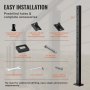 VEVOR cable railing post, 107x2.54x5 cm steel railing post with horizontal holes, 13 pre-drilled holes, SUS304 stainless steel post with curved bracket, black, LGZH106.72.55CQ93V0