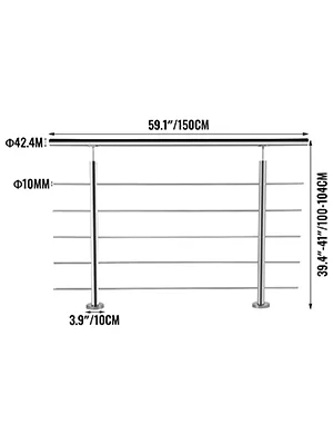 Questo binario per gradini da esterno è durevole e robusto, antiruggine e anticorrosivo grazie alla sua struttura in acciaio inossidabile 304. La superficie lucida senza sbavature è liscia e confortevole. Lunghezza del tubo: 150 cm, diametro del tubo: 42 mm.