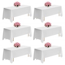 VEVOR Tovaglia per Tavolo Rettangolare, Tovaglia Lavabile in Lavatrice, Copritavolo in Tessuto di Poliestere Resistente alle Pieghe per Matrimonio, Festa, Banchetto, Bianco 6 Pezzi 1778 x 3048 mm