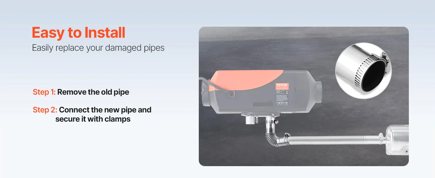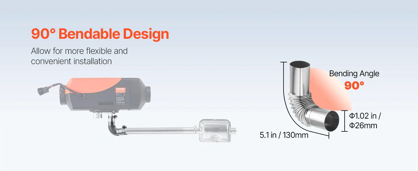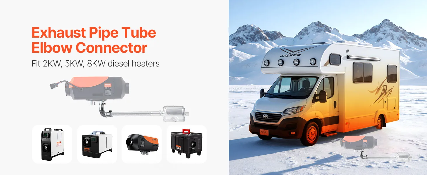 Ampia compatibilità: il nostro kit di raccordi a gomito per lo scarico del riscaldatore diesel è compatibile con un'ampia gamma di riscaldatori diesel da 2 kW, 5 kW e 8 kW. Realizzato in acciaio inossidabile di qualità, garantisce uno scarico fluido