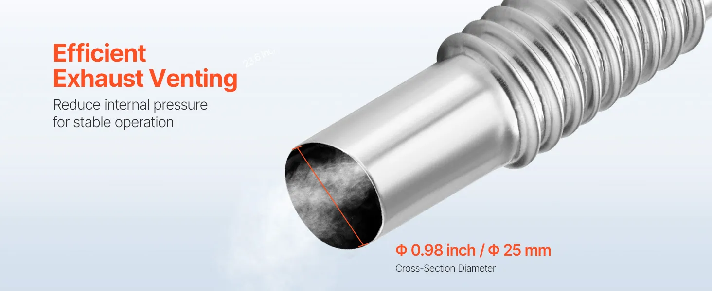 Il nostro raccordo a gomito per tubo di scarico di grande diametro presenta un'apertura di Φ 0,98 pollici / Φ 25 mm per accelerare lo scarico dei gas di scarico. Riduce al minimo l'accumulo interno, aiutando il riscaldatore a funzionare senza problemi anche durante un uso prolungato.