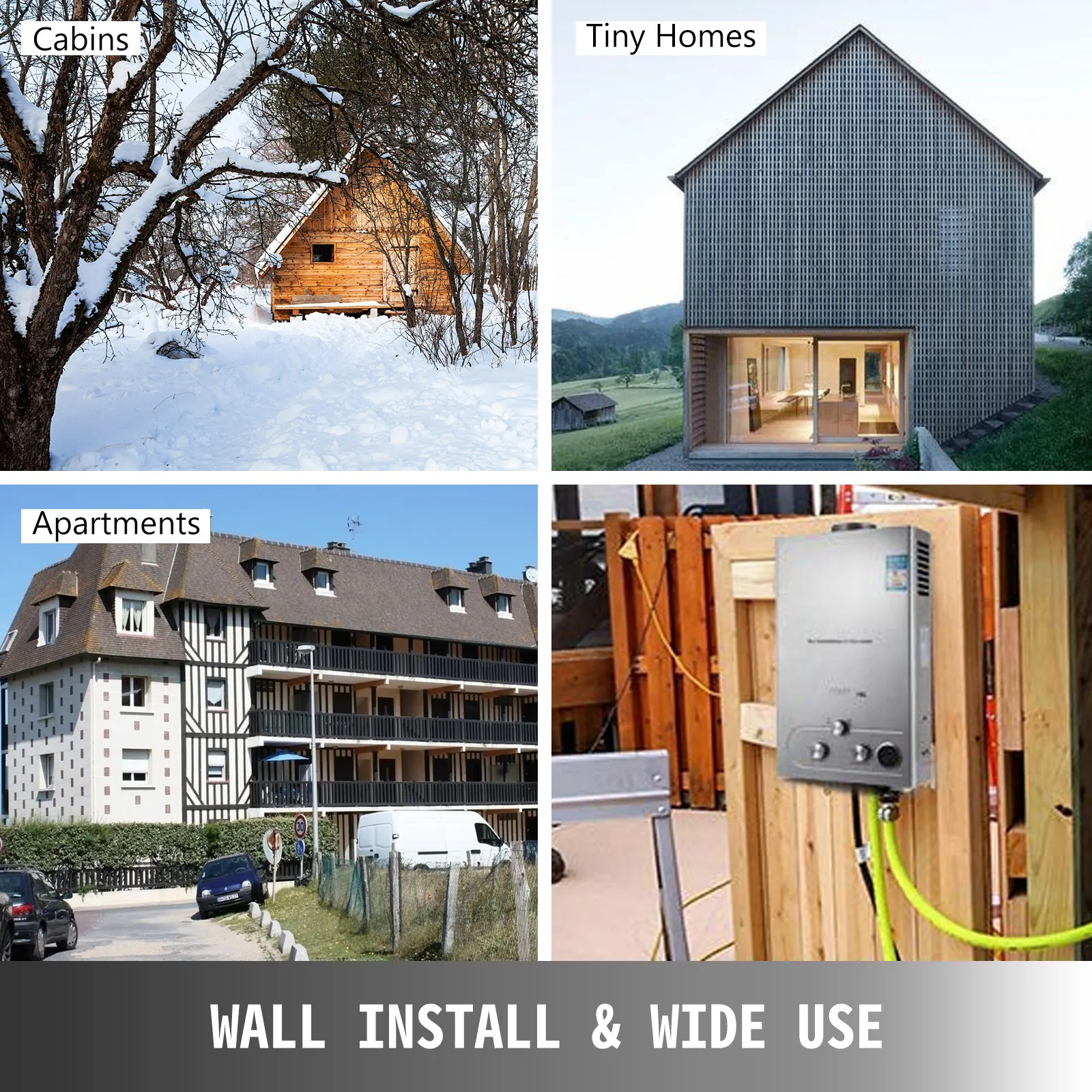 Design a parete, doccia in bagno mentre macchina installata in cucina, evita il rischio di perdite di gas tossici durante il bagno. Vieni con un kit soffione doccia come regalo.