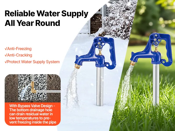 Design antigelo migliorato: il nostro idrante da giardino antigelo è dotato di una valvola di bypass che drena l'acqua residua attraverso il foro inferiore quando fa freddo, impedendo l'accumulo di acqua e il congelamento all'interno del tubo