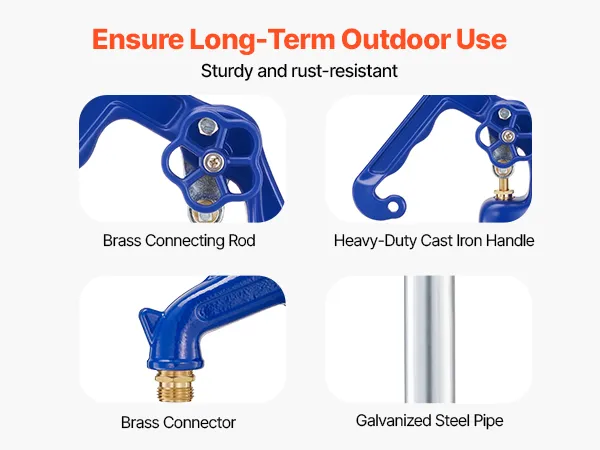 Realizzato con una robusta maniglia in ghisa, connettori in ottone e tubi in acciaio zincato, il nostro idrante per rubinetto dell'acqua antigelo è durevole, resistente alla corrosione e alle crepe, affidabile per un uso esterno a lungo termine in tutte le condizioni atmosferiche.