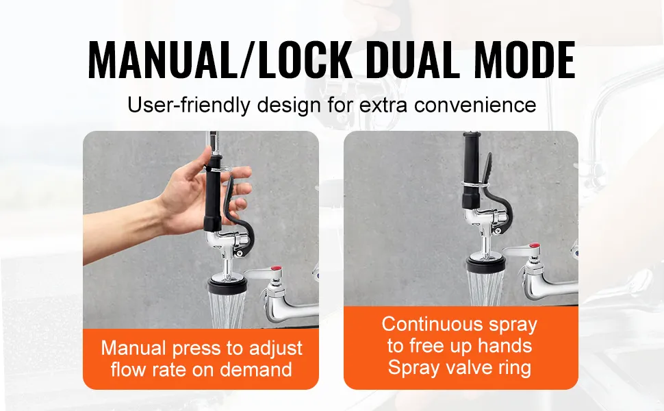 Tenuta a prova di perdite: il rubinetto commerciale con spruzzatore utilizza un nucleo della valvola in rame puro di alta qualità che è robusto, durevole e non soggetto a crepe. Accoppiato con anelli di tenuta e un dado ispessito da 2 mm, garantisce una forte tenuta per evitare perdite, risparmiando acqua e prolungandone significativamente la durata.