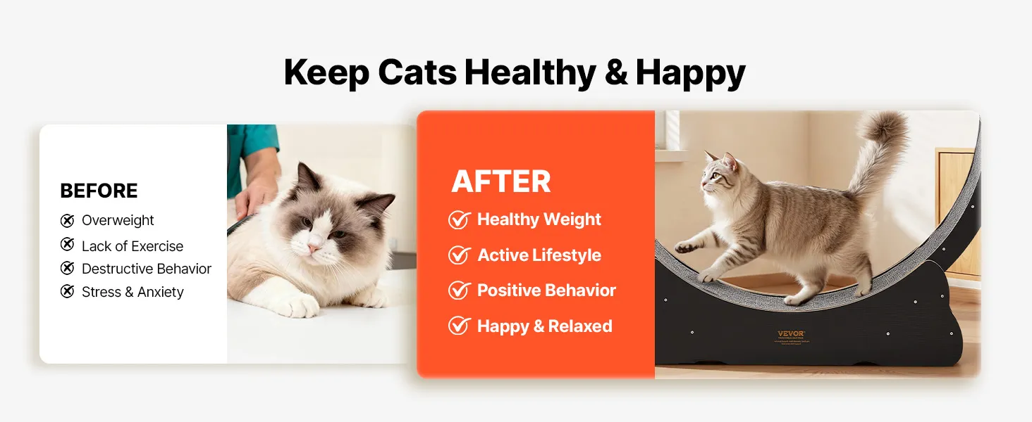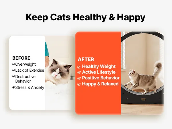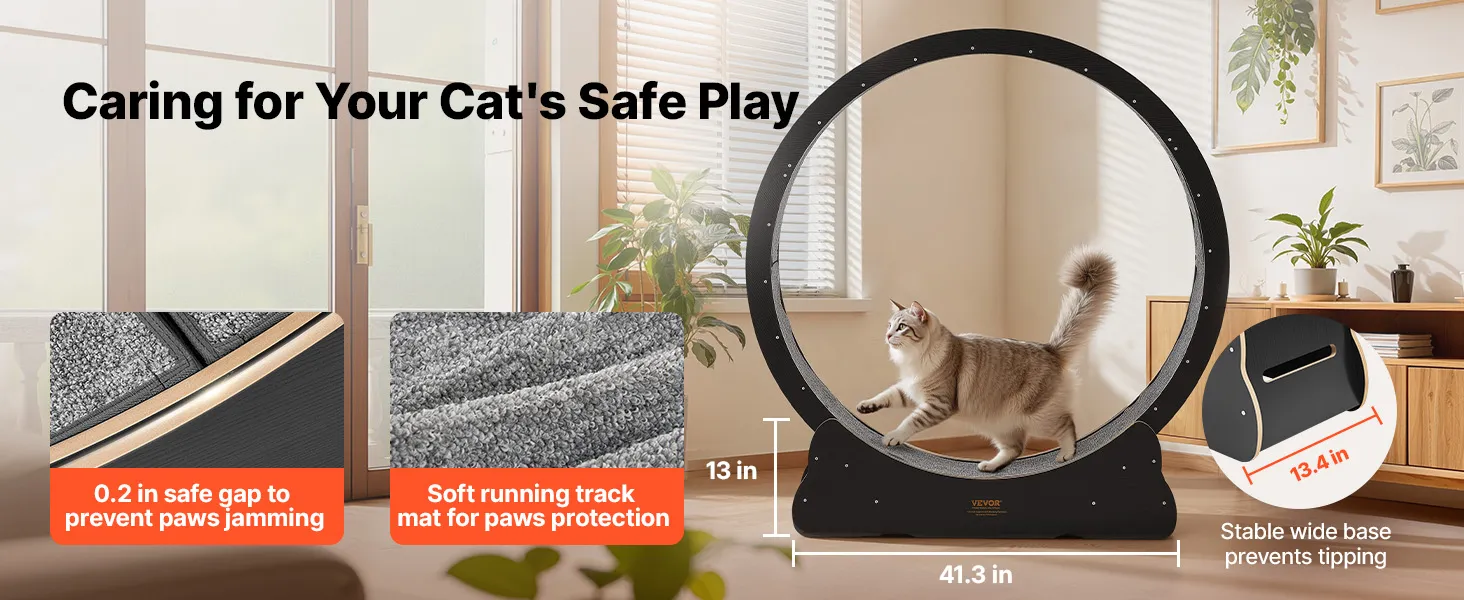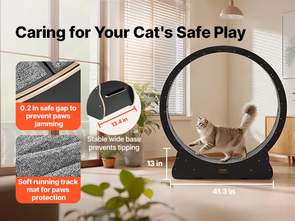La sicurezza del gatto prima di tutto: progettata per gatti di taglia media e grande, ruota per esercizi non affatica la colonna vertebrale del gatto. L'ampia base offre maggiore stabilità, impedendo ribaltamento durante l'esercizio fisico intenso