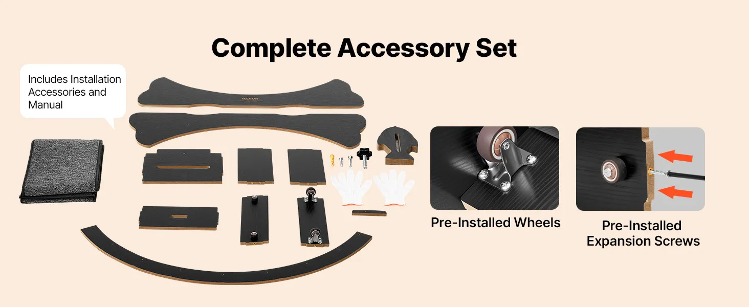 Kit di accessori completo: kit di ruote per gatti include un manuale di montaggio dettagliato, guanti, viti di espansione preinstallate, per farti risparmiare tempo di montaggio. Un bastoncino per insegnare al tuo gatto a usare rapidamente ruota