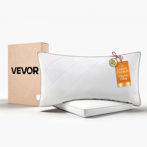 VEVOR Cuscini da Letto per Dormire, Set da 2, Cuscini da Hotel di Lusso di Qualità Queen Size con Imbottitura in Piumino Alternativo Originale, Soffici e di Supporto, Biancheria da Letto, Bianco