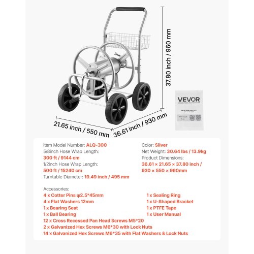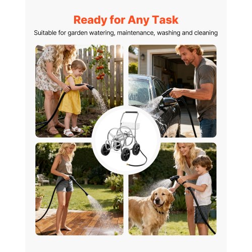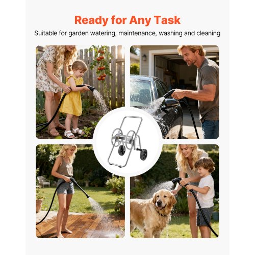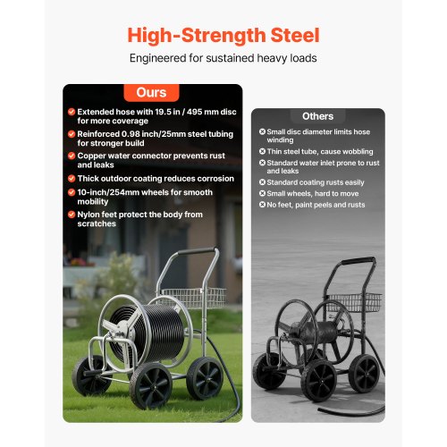 VEVOR Carrello avvolgitubo, può contenere fino a 250 piedi di tubo da 5/8", carrelli per tubi dell'acqua da giardino, strumenti mobili con 4 ruote, piantagione da esterno in acciaio verniciato a polve